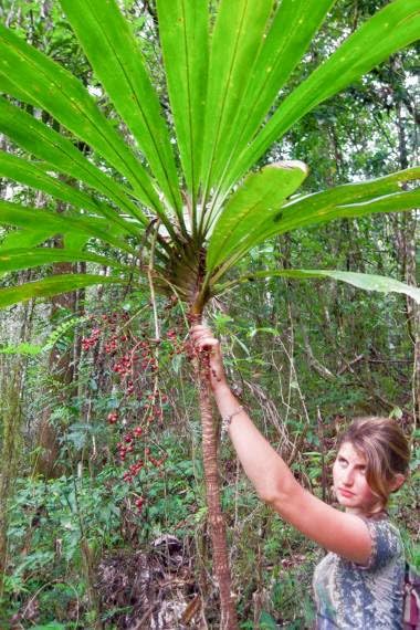 A beautiful midsized Cordyline from New Caledonia that forms a slender unbranched trunk topped by a dense, ascending crown of beautiful, stiff, wide green leaves. It grows solitary and much larger than the two Cordyline currently known from New Caledonia and may represent a new, undescribed species.