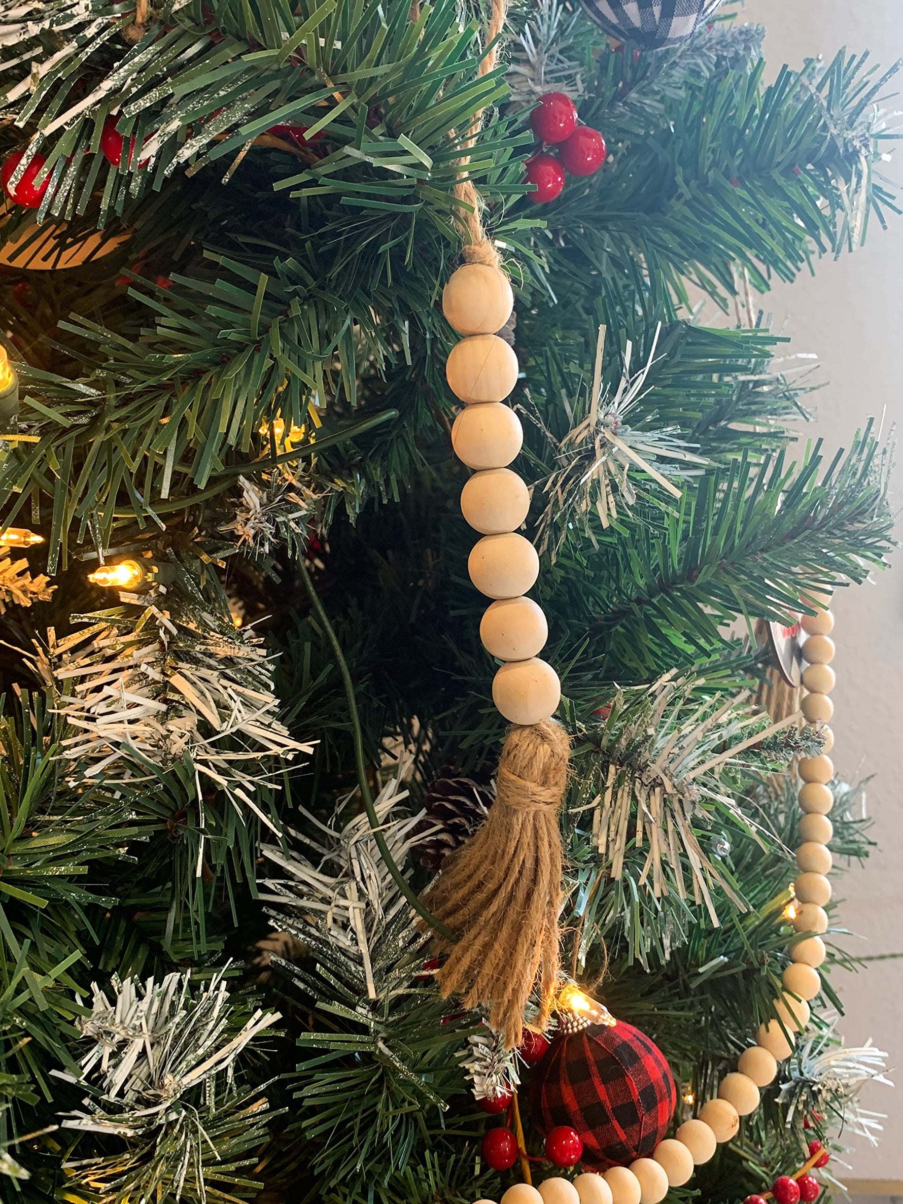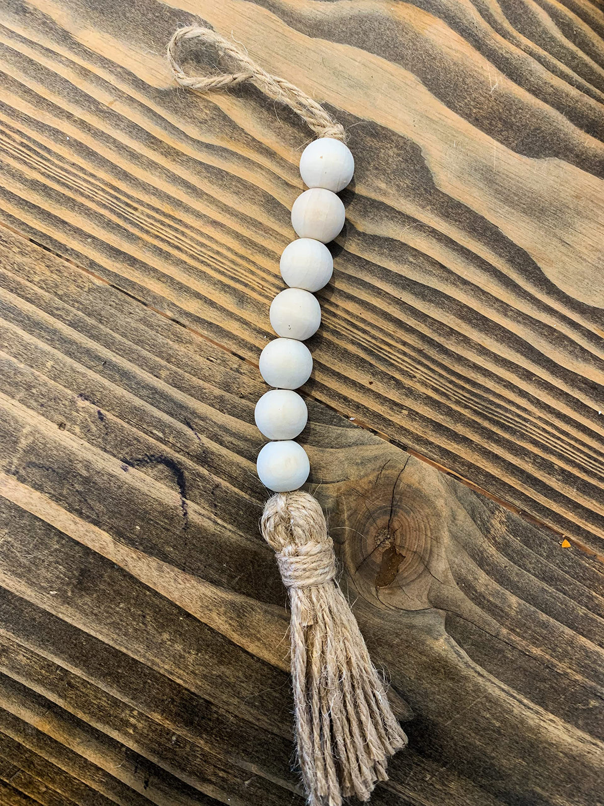 Authentic Farmhouse Wooden Geometric Macramé Beads Strung On Twine With a Rustic Fringe Tassel. *Will come assembled