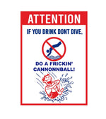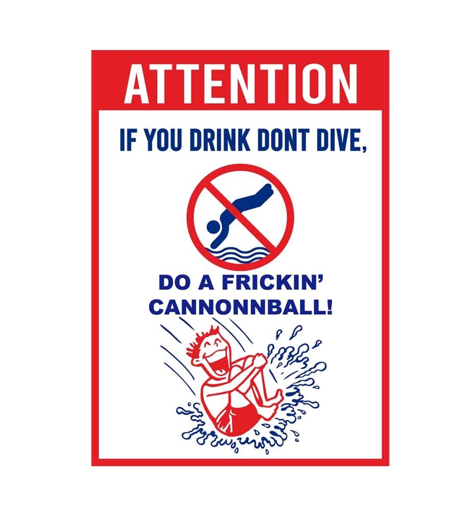 No Diving Pool Sign - If You Drink Dont Dive, Do A Frickin Cannonball - Heavy Duty Aluminum Pool or Patio Sign