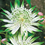 RARE FLOWER: Versatile and dependable Astrantia is an ideal perennial for those garden spaces that need a little pick-me-up and a lot of style. This somewhat older, yet still quite popular cultivar adds phenomenal color and lots of blooms over an extended season. Shaggy is a prolific plant that produces ivory-white, 1-1½" umbels accented with a greenish-white collar-an eye-catching coloration that pollinators (and passersby) simply adore. Plant Shaggy in full sun to part shade for best results.