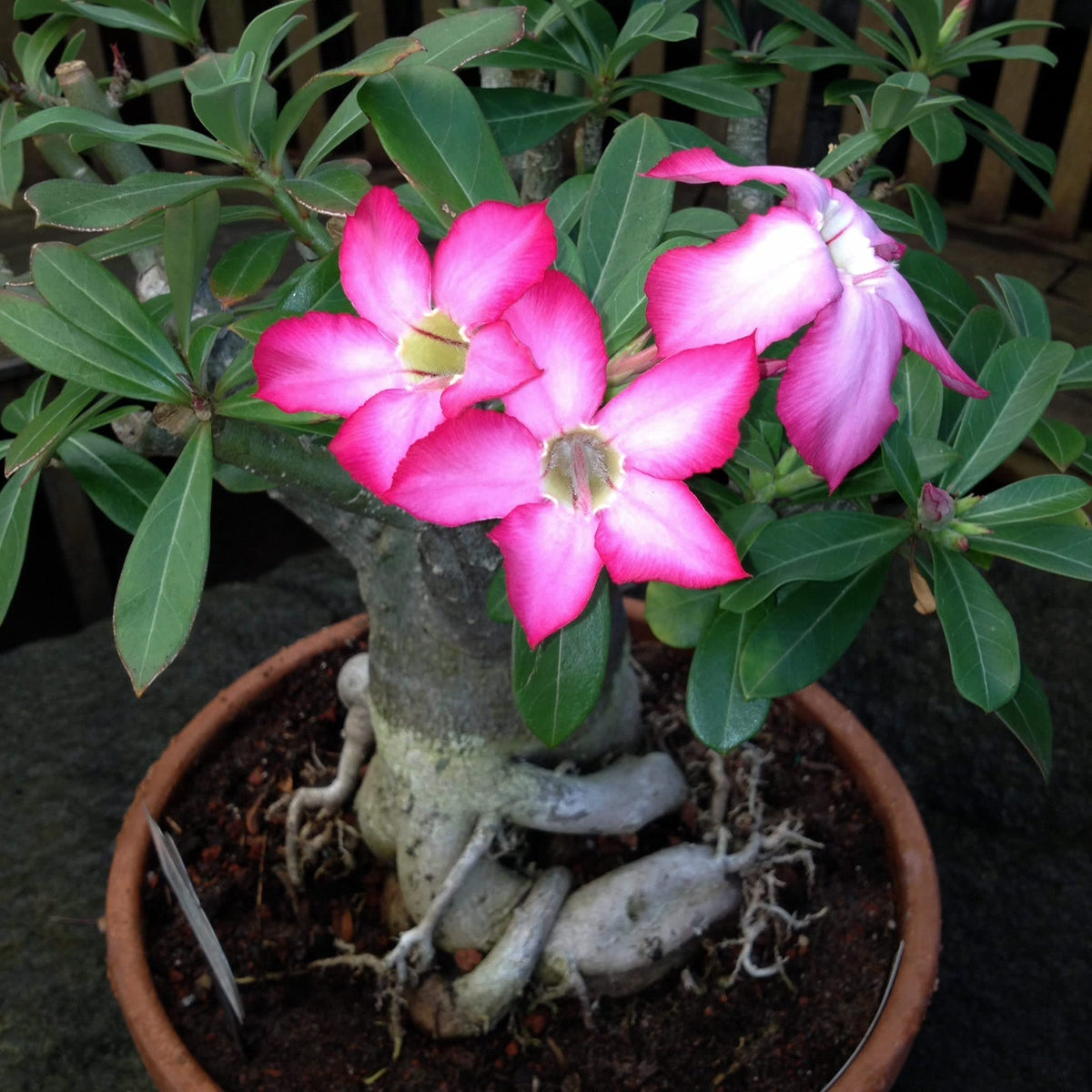 A selection of Adenium obesum with different coloured flowers.