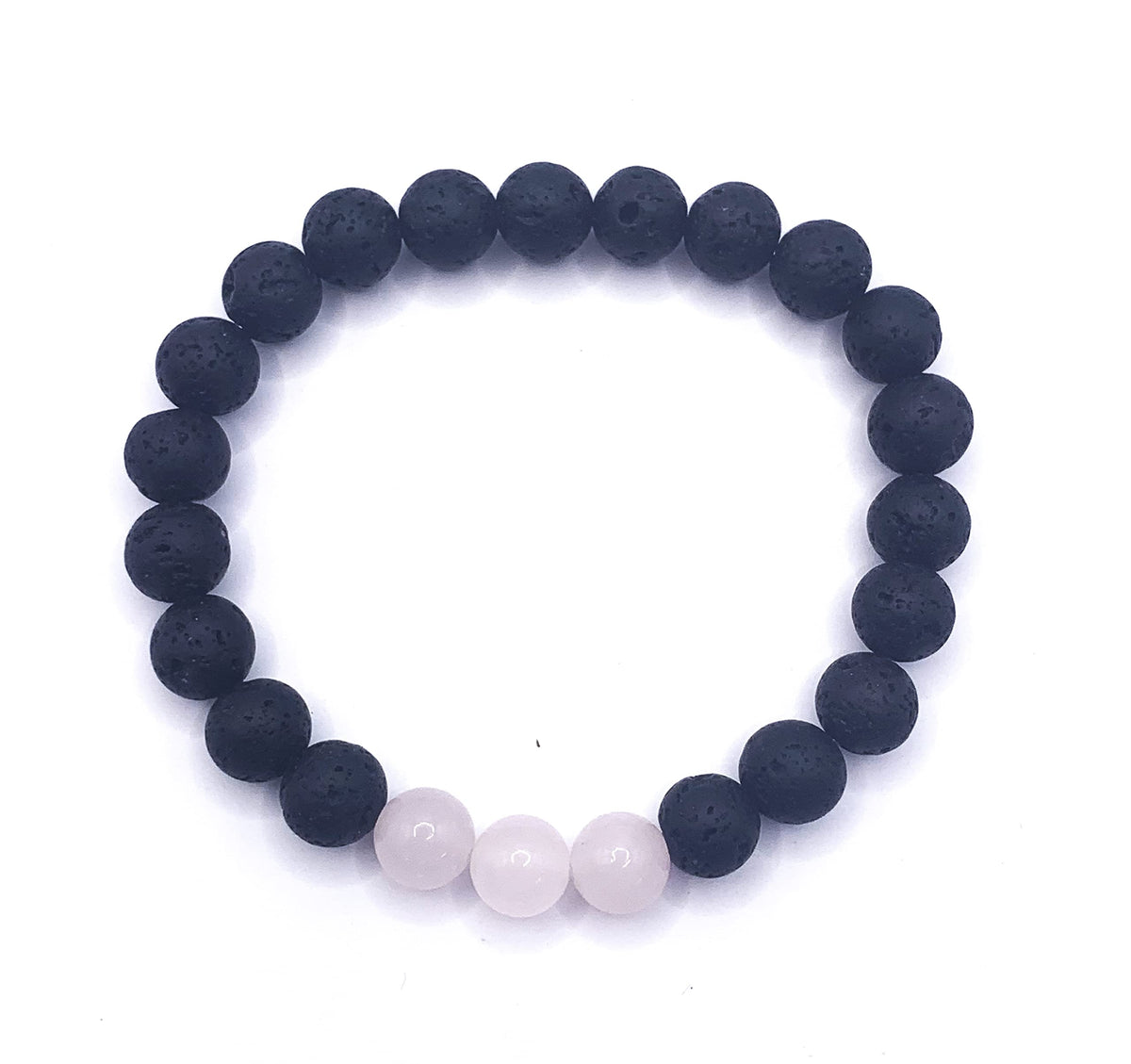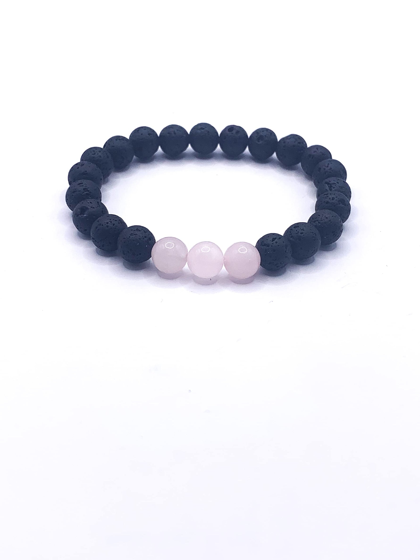 CZ Grain 3 Rose Quartz-crystal Lava Rock Essential Oil Diffuser Bead Bracelet- Chakra
