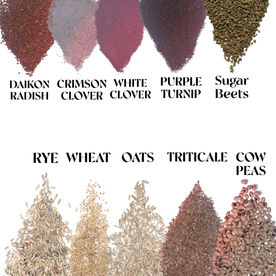 • EASY TO GROW: Sew in spring or fall. A blend of Sugar Beets, Oats, White Clover, Austrian Winter Peas, Triticale, Crimson Clover, Cow Peas, Daikon Radish, Purple Turnips, Wheat, and Rye