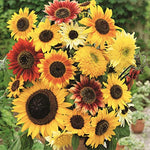 Here come the sunflowers. This mix features a diverse array of gorgeous sunflowers to give your garden a bright summer look, blended with unique varieties to make this a must-have for sunflower lovers. The Here Comes The Sun Mix shows off a broad spectrum of shapes, sizes and colors to create a beautiful medley of sunflowers.