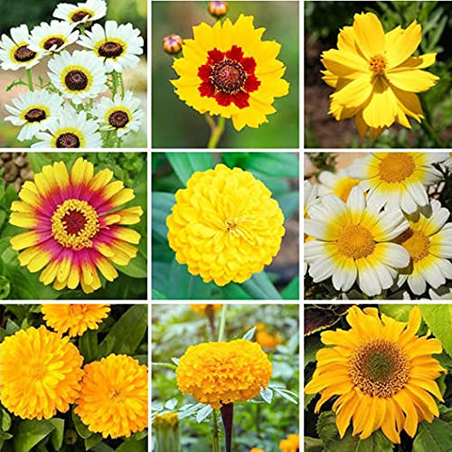 MELLOW YELLOW: Nine golden varieties are blended together in this mix to provide a tranquil sea of yellow wildflowers to your garden. With full, rich yellow colors, you'll get an intriguing and uniquely assorted array of blooms to accent the summer.