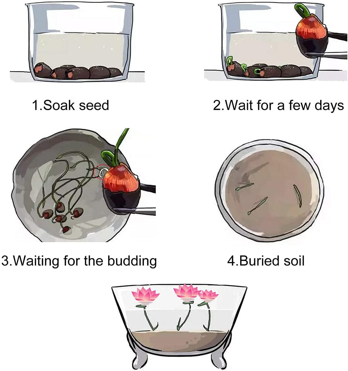 Mixed Bonsai Lotus Seeds Mixed Color Water Lily Flower Plant Fresh Garden Seeds,Finest Viable Aquatic Water Features Seeds (30 Pcs)