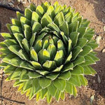 Agave victoriae-reginae, the Queen Victoria agave or royal agave, is a small species of succulent flowering perennial plant, noted for its streaks of white on sculptured geometrical leaves, and popular as an ornamental. This agave is highly variable in form, but in general the rosettes are small and compact, growing to 0.5m, composed of short, rigid, thick leaves that are green with a pattern of distinctive white markings. The markings are generally along leaf keels or margins, giving a sort of polyhedral appearance. Marginal teeth are usually lacking, while the terminus of the leaf may include 1 to 3 spines, each 1.5-3 cm in length. Cream coloured flowers are borne in erect racemes up to 4m in length.
