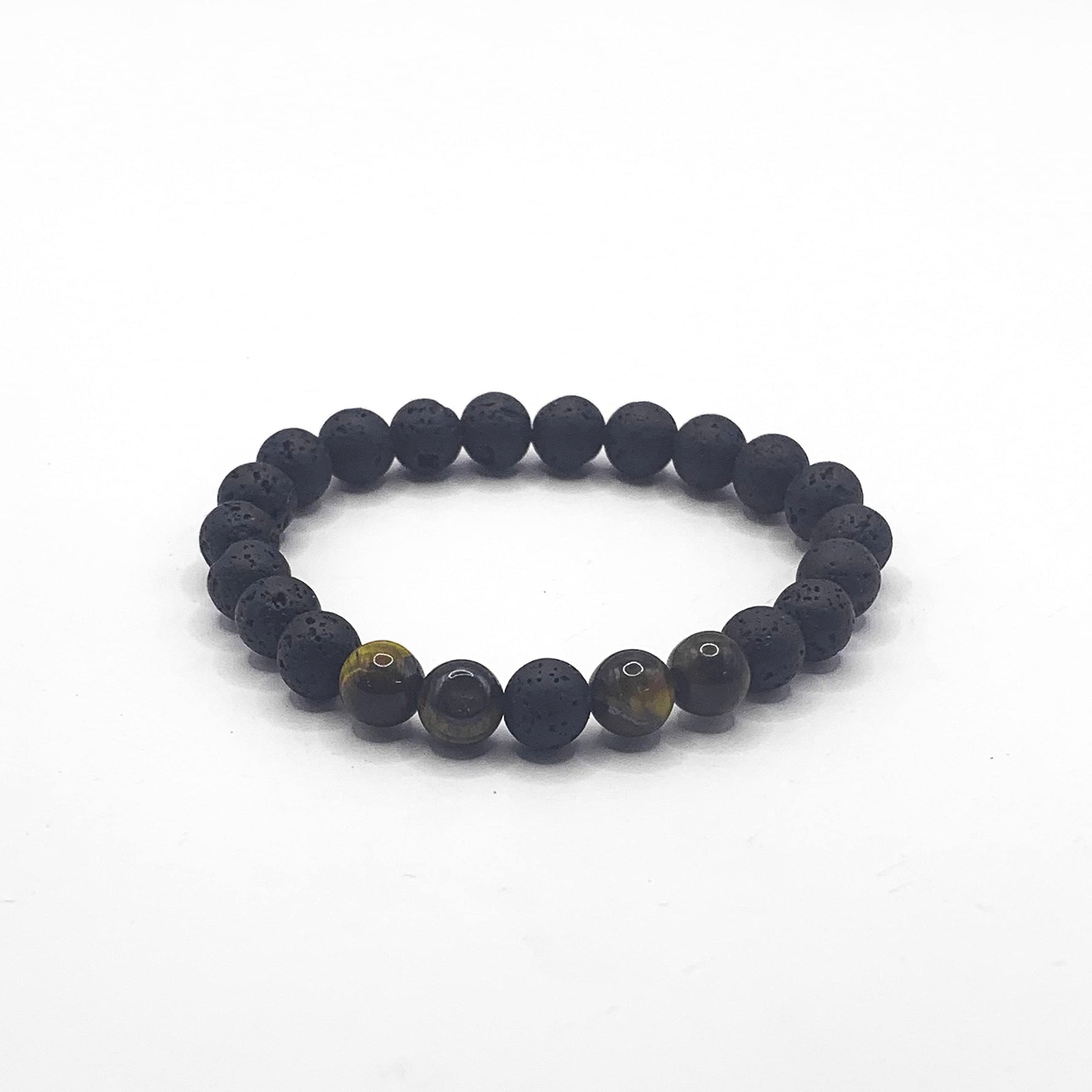 CZ Grain 3 Stone Tiger Eye & Lava Rock Essential Oil Diffuser Bead Bracelet