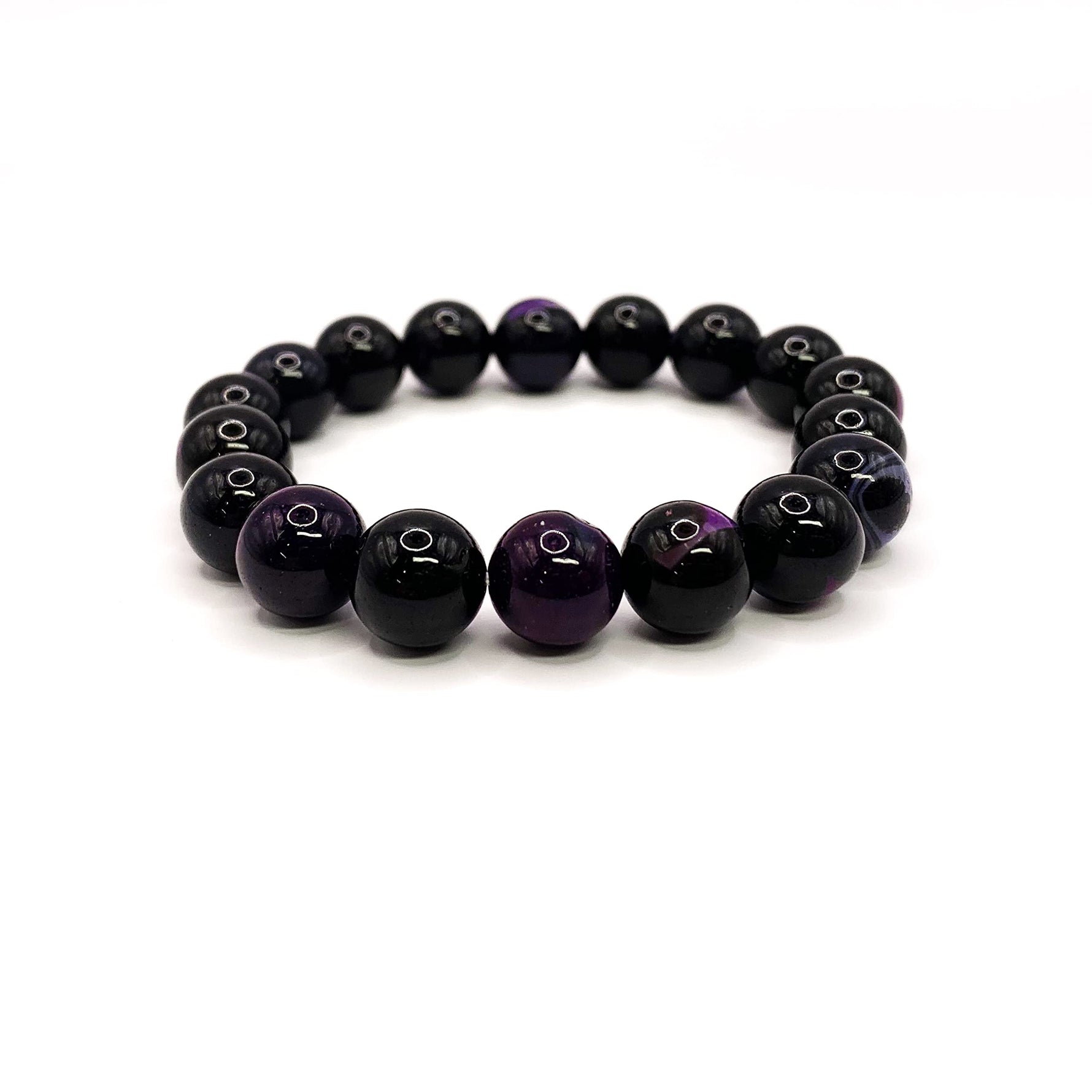 Purple Crystal Agate 100% Healing Bracelet Crystal Agate is known as Power stone which brings rebalancing, healing and harmonizing the body, mind and Spirit. It also cleanses the aura and shields from negative energy. Agates healing proporties are to bring healing, calm and a sense of safety and security to the body. Agate also enhances mental function which promotes concentration and analitical abilities! A great gift for loved one, friend and family!