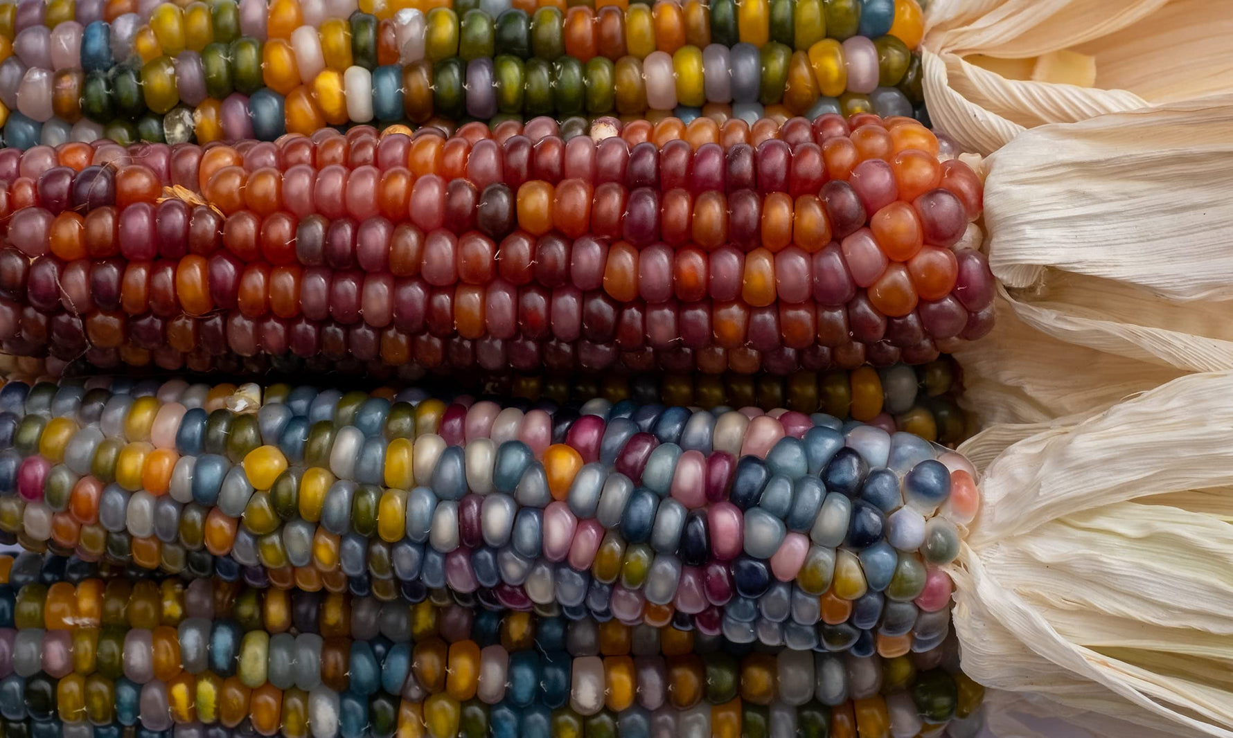 5 ears of fresh picked Glass Gem Corn Ears with the Husk.