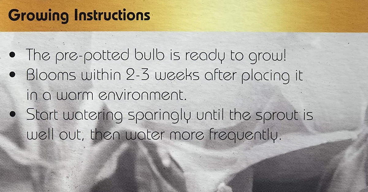 • Large Bulb is Pre-Planted in White 5 1/2 in Pot that has Bottom Water Catch to Allow for Good Drainage