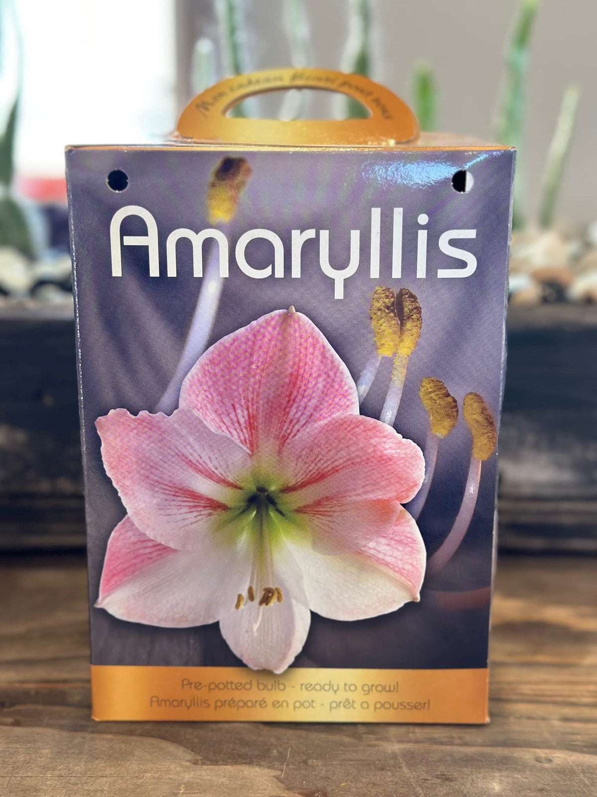 Amaryllis Grow Kit - Pre Potted Amaryllis Bulb in Gift Box - Live Plant Christmas Present