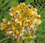 Clusters of light yellow to orange flowers atop a sparsely branched perennial or in axils of compound leaves.