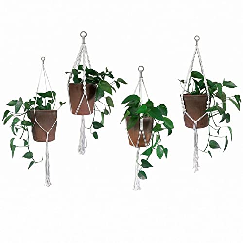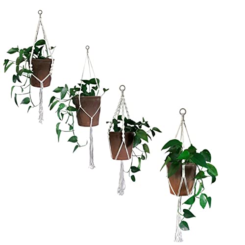 Authentic Set of 4 Macrame Plant Holder Basket With Wooden beads For Indoor And Outdoor Bohemian Decor