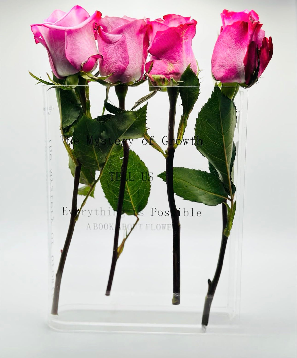 Bookend Clear Flower Vase, Cute Shelf Decor for Cut Flowers - Vases for Home Office Decor, A Book About Flowers