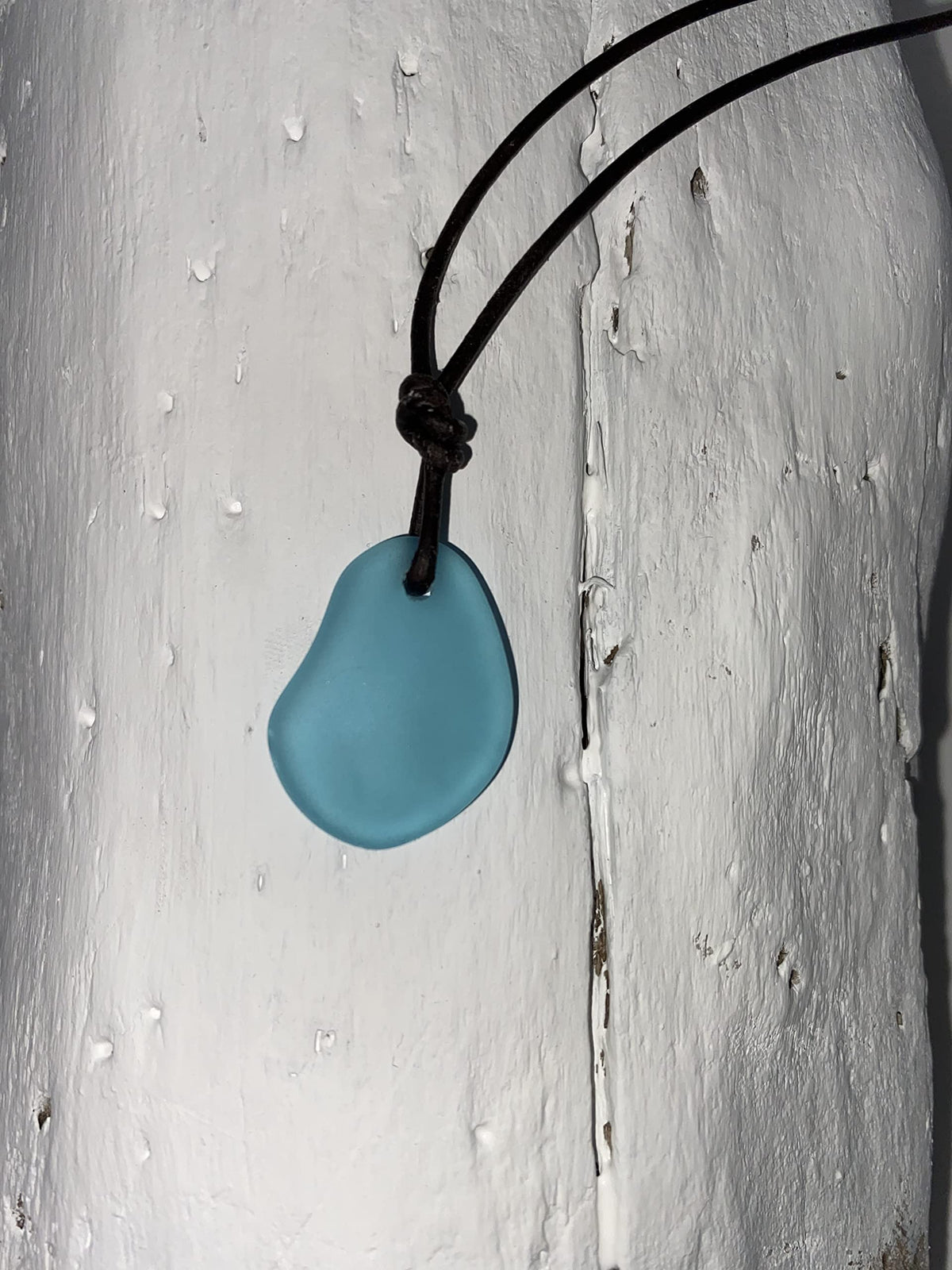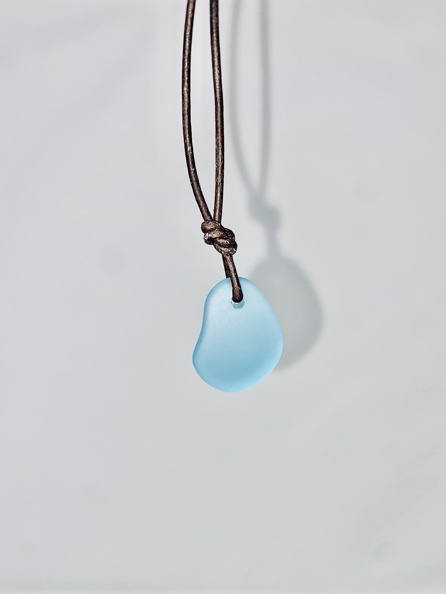 HomeCZ Grain Blue Sea Glass Necklace with Leather Cord - Handmade - Good Luck Necklace