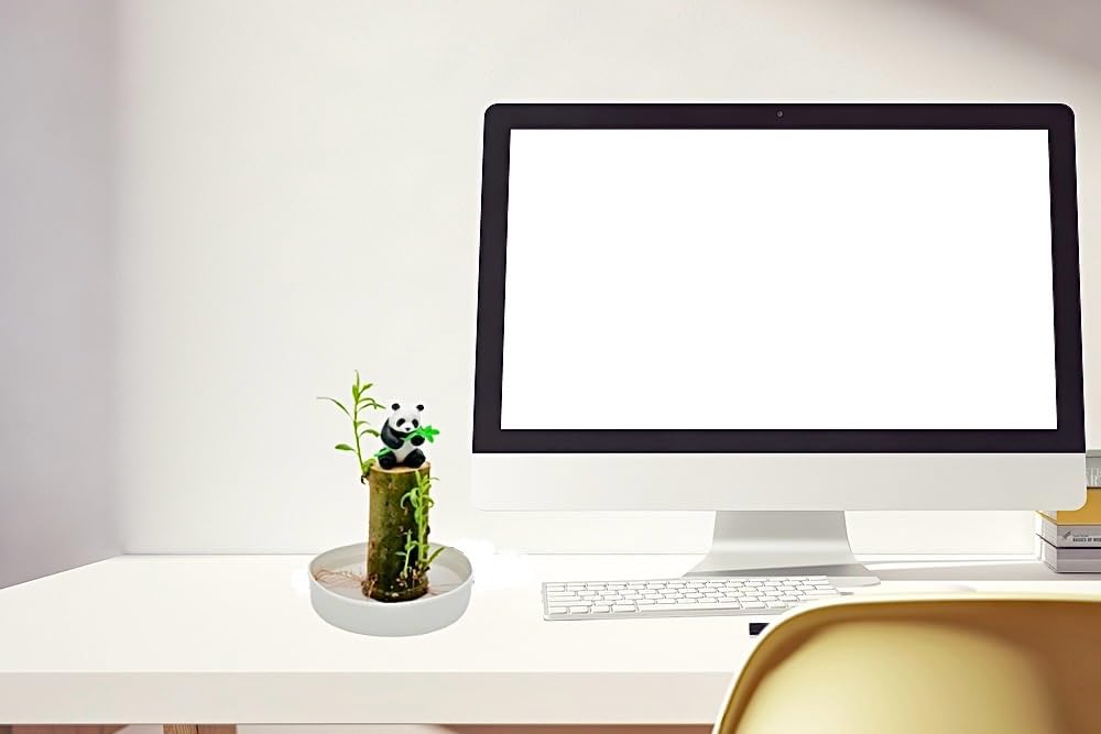 HomeCZ Grain Lucky Bamboo Office Desk Planter and Panda - Thick Trunk Brazil Willow Wood Grows Fast - Window or Cabinet Decor - All in One Desktop Bonsai Kit