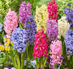 Large Mixed Hyacinth Bulbs. This Mixed Hyacinth Jumbo Pack is perfect for any gardener who loves color and sweet fragrance! This perfect blend of vibrant hues will light up the spring garden, adding a rainbow of color and a pleasant aroma to your entire yard. Or try planting (forcing) these in a colorful pot to brighten your kitchen or office space in Spring. This beauty is perfect for borders or container arrangements. Ideal in mass plantings. Pair with CZ Grain Allium Bulbs and Crocus Bulbs for a real stunner spring show of colorful and diverse flowers.