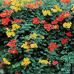 All our plants are organically grown: Yellow Trumpet Vine-hummingbird love them. Dark shiny leaves are smothered in large, showy, sunny-yellow trumpet-shaped flowers from July to November. Vigorous grower reaches 20-40 ft. Covers almost any support. Drought tolerant. Perennial in zones 4-9..